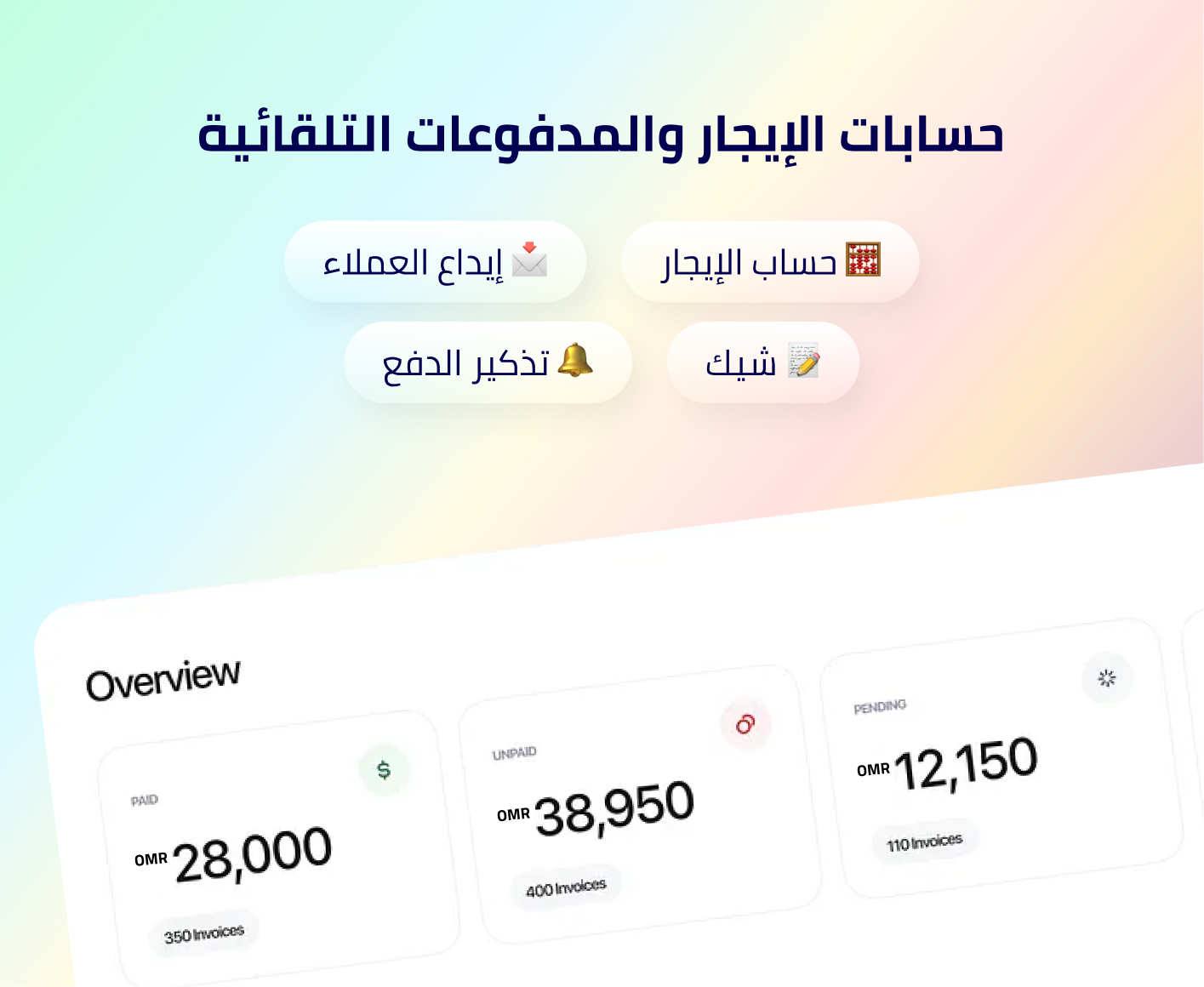 سجّل وتتبع وأدر الشيكات المؤجلة والمستلمة بسهولة للإيجار والودائع والمدفوعات الأخرى. كن على اطلاع دائم بمواعيد الاستحقاق وحالة التحصيل وتنبيهات الشيكات المرتجعة.
