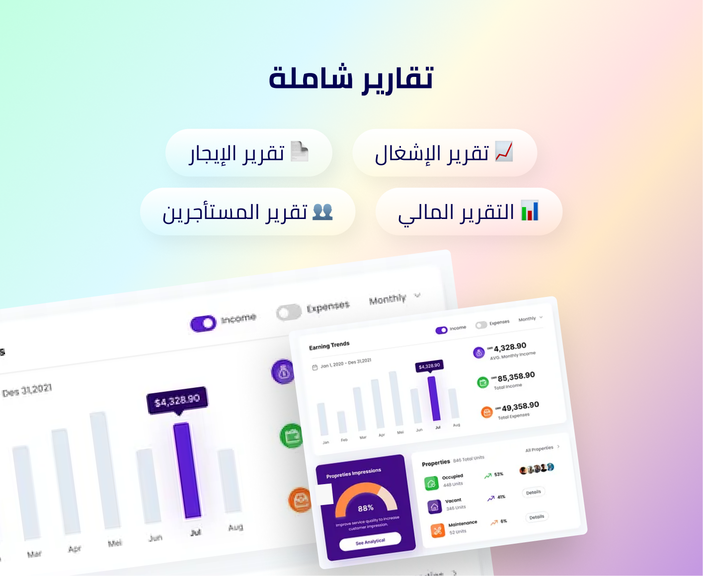نقدّم أكثر من 30 وحدة متطورة مصممة لتبسيط إدارة العقارات، وتعزيز الكفاءة، وتسهيل عملياتك.