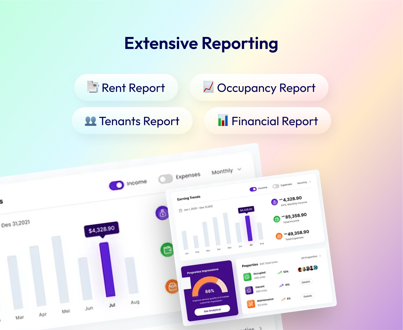 Unlock powerful insights with our real estate management system. Get AI-driven data, detailed reports, and advanced analytics all in one place. Whether you’re tracking performance, monitoring trends, or making informed investment decisions, our system equips you with the tools you need to stay ahead in the real estate market.